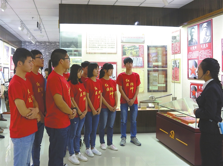 学生在学校红色卫生史博物馆接受教育。
