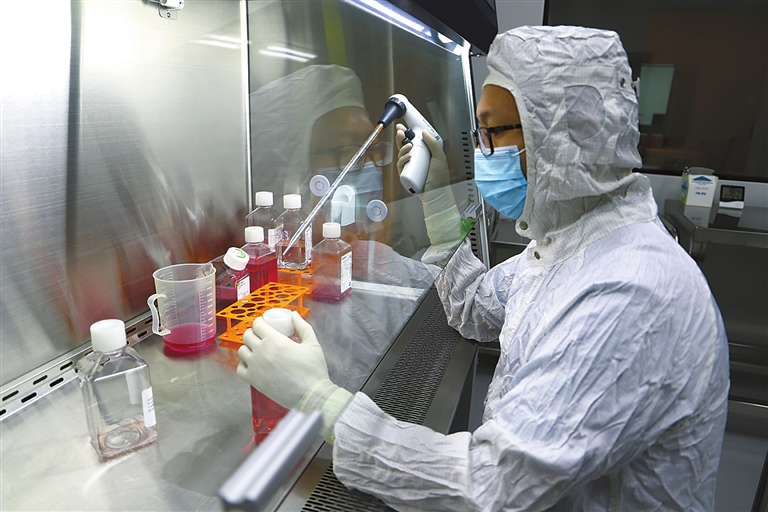 教师在干细胞临床转化中心做实验。