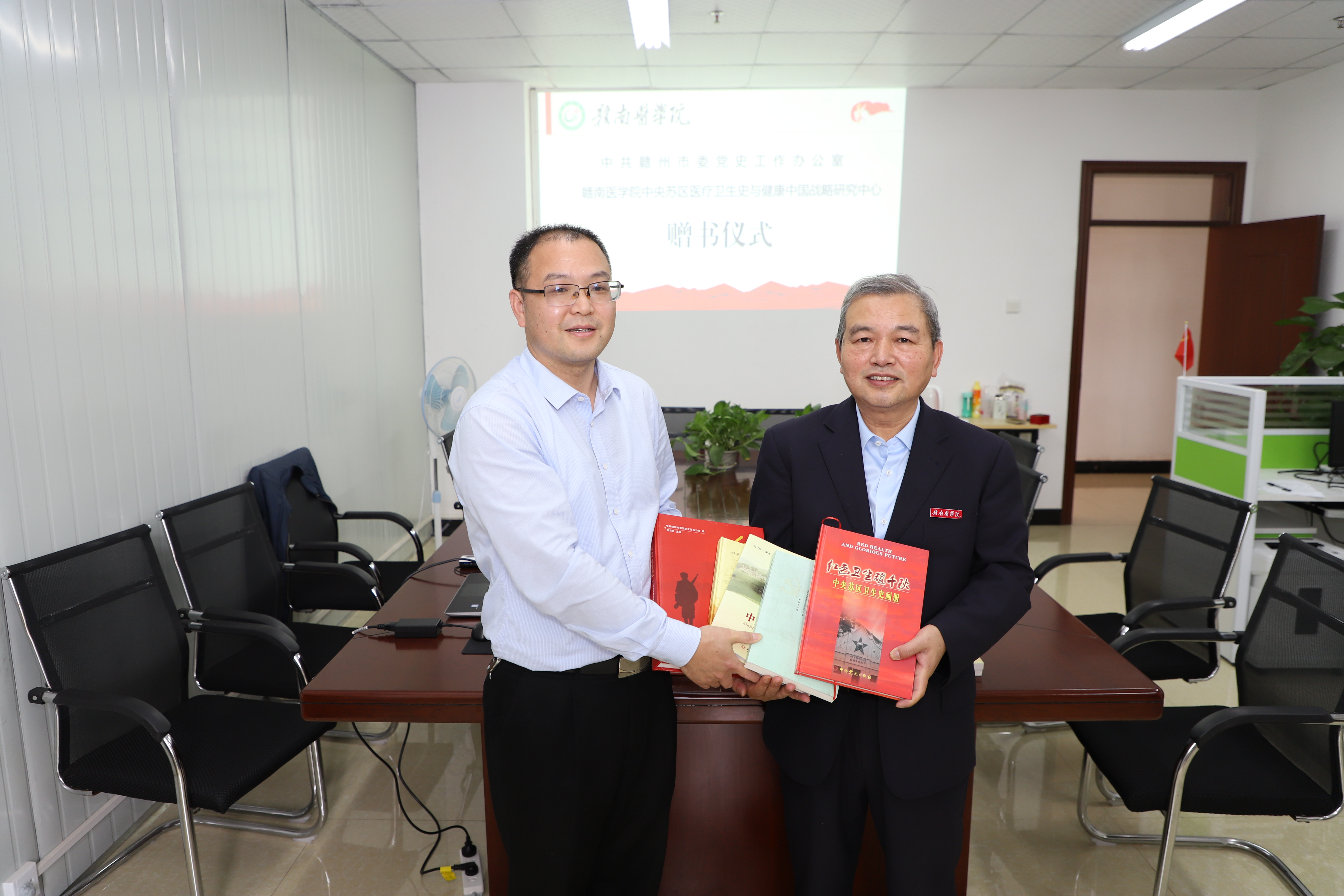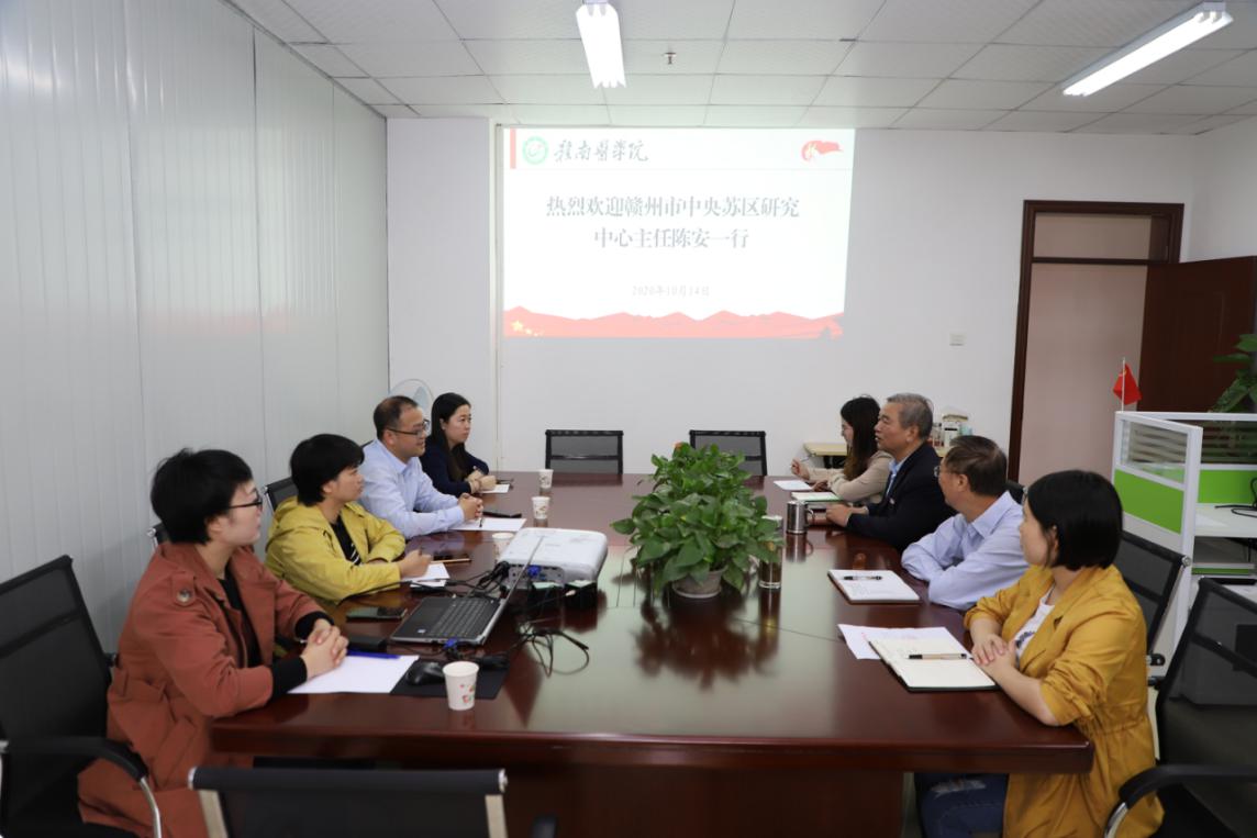 10月14日上午,赣州市党史办中央苏区研究中心(苏区精神研究所)陈安主任(所长)一行到我校中央苏区医疗卫生史与健康中国战略研究中心交流指导。