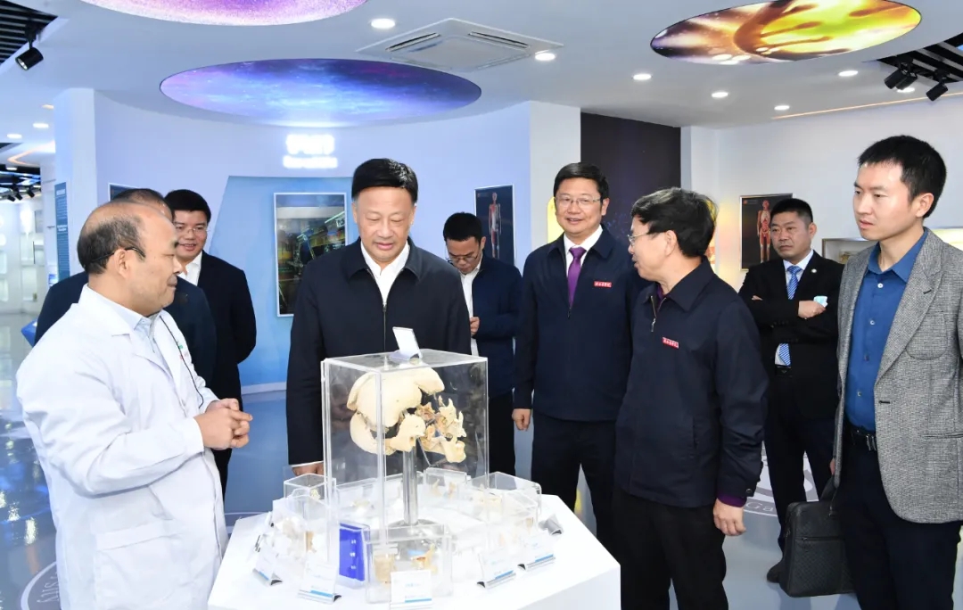 在赣南医学院红色卫生史博物馆,王水平仔细聆听了中央苏区红色卫生发展轨迹、以及中央苏区医疗卫生机构、卫生防疫、药材供应、医学教育等情况介绍;在人体生命科学馆,王水平饶有兴趣地参观了“生命之初”、“生命之本”和“生命之光”三个主模块展区和16个功能展区。他表示,在革命战争年代,红医先辈们面对枪林弹雨、食不果腹的危险境地,发扬救死扶伤、医者仁心的崇高精神,诠释了平凡而高尚的家国情怀;希望学校充分挖掘赣南和学校的红色卫生资源,深入传播红色卫生文化,持续改进办学条件,坚持用红医精神立德树人,为全省卫生健康事业高质量发展提供更多合格的医学人才。