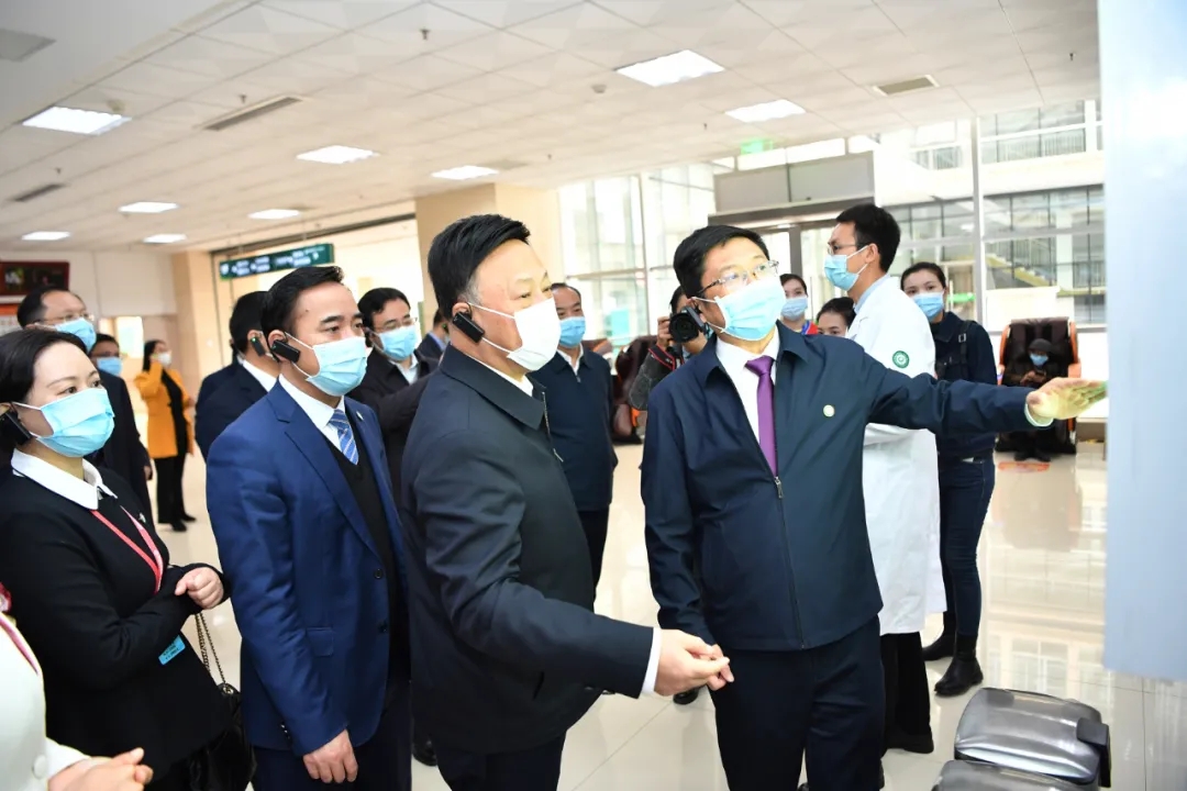 在赣南医学院第一附属医院,王水平实地察看了空地一体化紧急医学救援基地、检验医学科精准医学中心、医药大数据中心和住院服务中心等地,详细了解医院近年来的发展情况,看望慰问一线医务人员,听取有关工作意见建议。他指出,医院近年来在内涵管理、改善就医体验以及科研水平提升等方面取得了长足发展,特别是在新冠肺炎疫情防控阻击战中发挥了重要作用。他要求,医院要立足高水平的规划,按照“平战结合”的原则,加快省级重大疫情防控救治基地建设,提升公共卫生防控救治能力,进一步推动医院高质量发展。