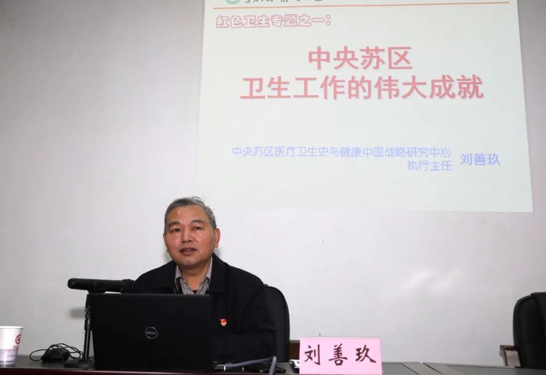 动员会后,担任中央苏区医疗卫生史与健康中国战略研究中心执行主任的刘善玖教授以《中央苏区卫生工作的伟大成就》为题,从苏区建立前赣南闽西的卫生状况、中央苏区大力发展卫生事业、中央苏区医疗卫生工作的历史地位和弘扬红医精神四个方面,声情并茂地讲述了我们党卫生健康事业发展的光辉历程。