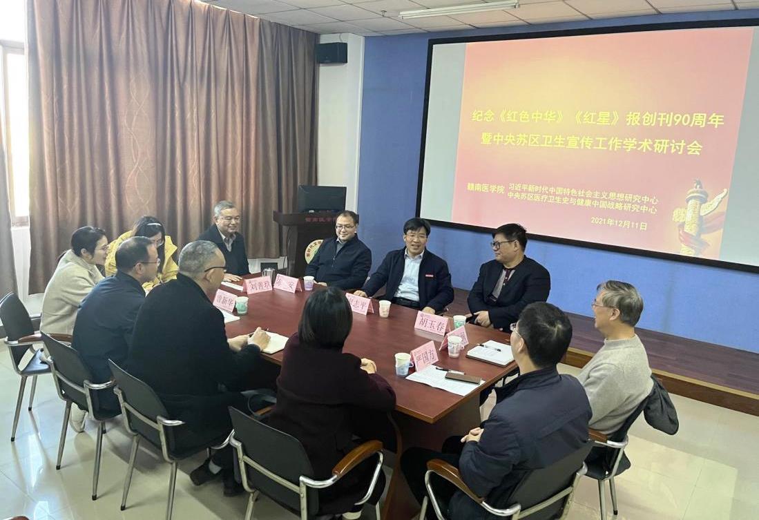 12月11日,纪念《红色中华》《红星》报创刊90周年暨中央苏区卫生宣传工作学术研讨会在我校红色卫生史博物馆举行。会议由我校习近平新时代中国特色社会主义思想研究中心和中央苏区医疗卫生史与健康中国战略研究中心共同举办。学校党委委员、党委宣传部长、中央苏区医疗卫生史与健康中国战略研究中心副主任廖志平出席研讨会并讲话。