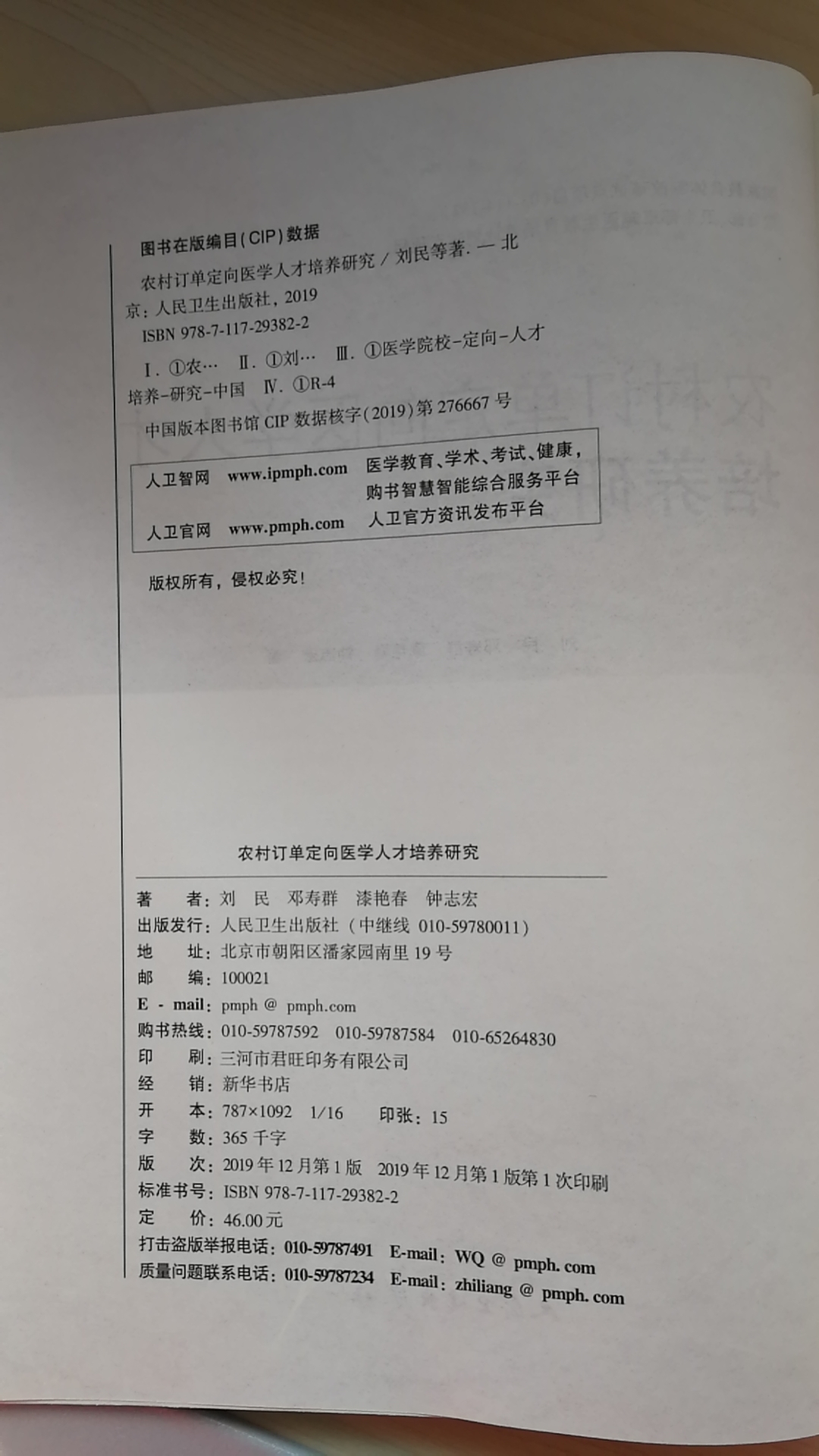 刘民、邓寿群、漆艳春、钟志宏:《农村订单定向医学人才培养研究》,人民卫生出版社,2019年12月