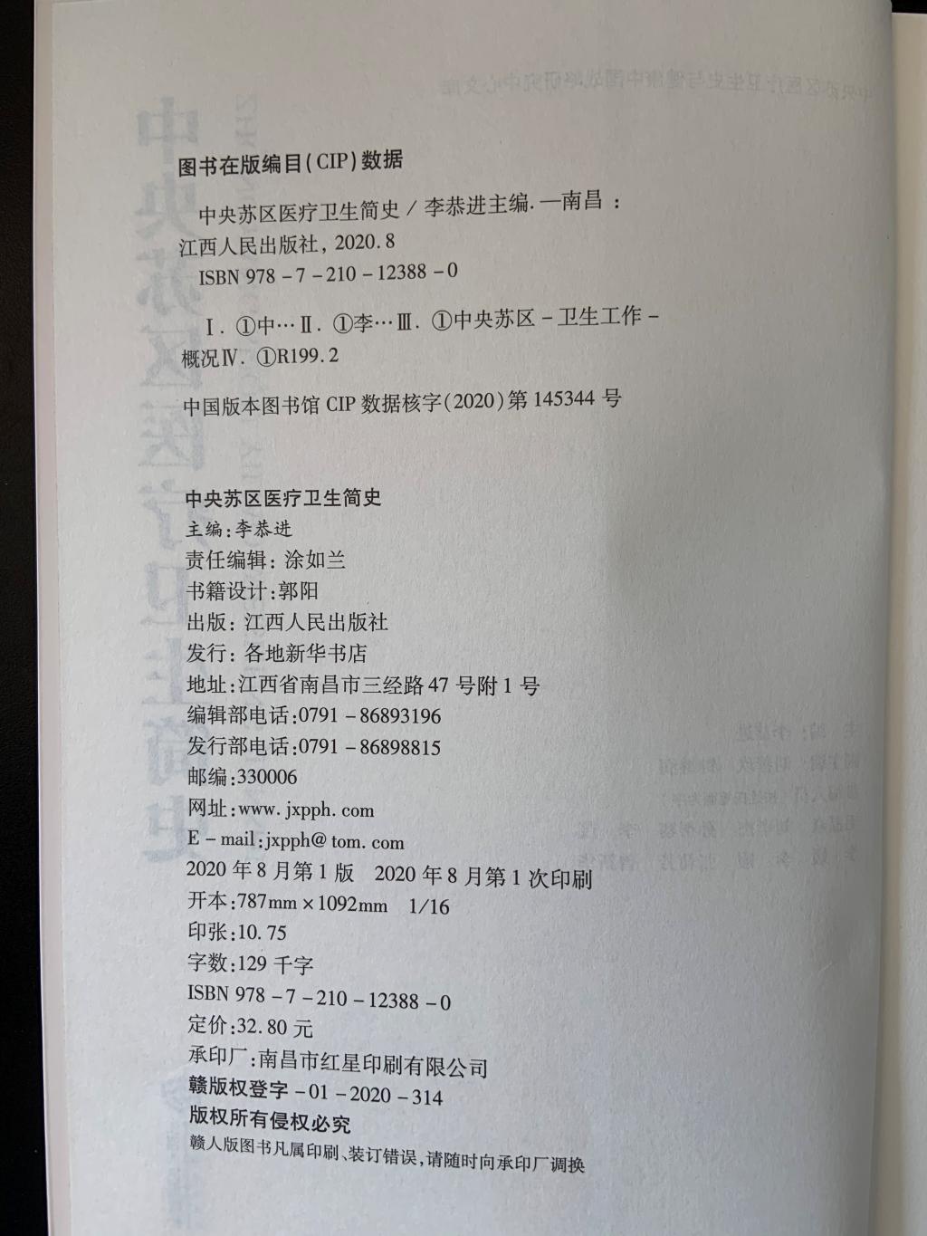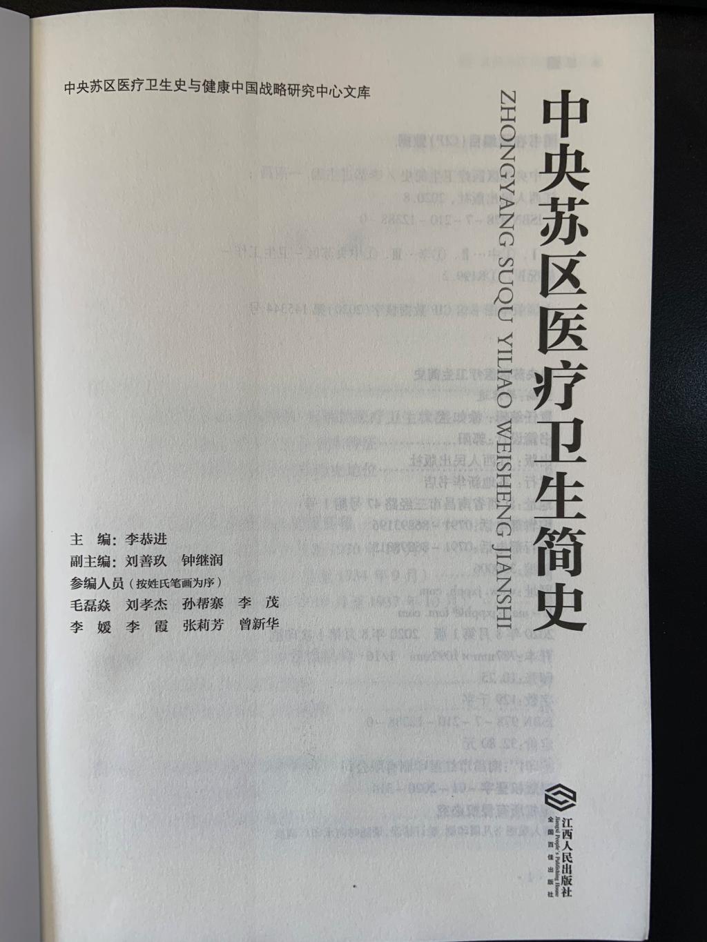 李恭进、刘善玖、钟继润:《中央苏区医疗卫生简史》,江西人民出版社,2020年8月